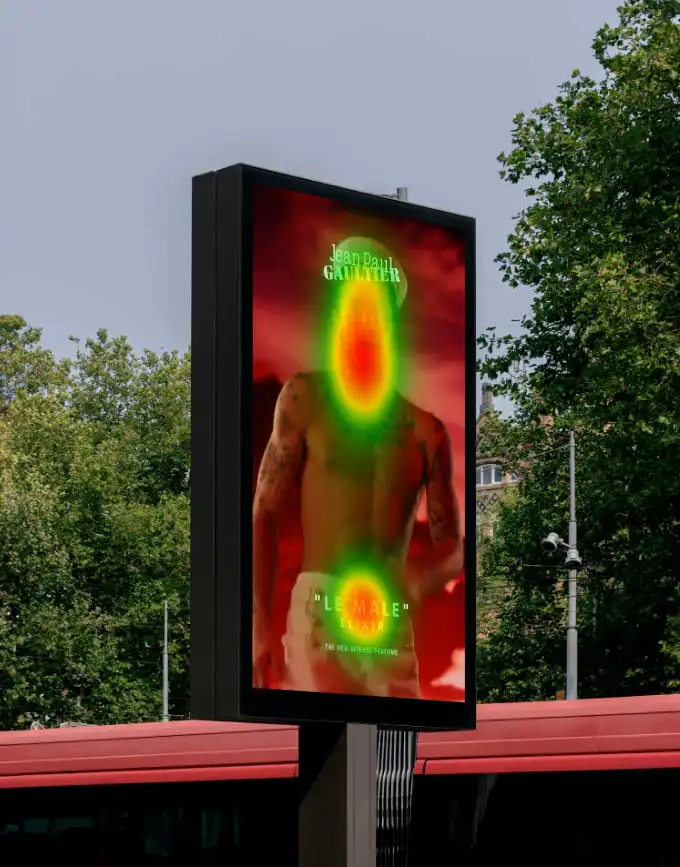 Basada en Inteligencia Artificial de Eye Tracking, identifica los elementos de la creatividad que captan mejor la atención de la audiencia. Determina las zonas calientes donde se fija más la mirada (más efectivas) y las zonas frías (menos efectivas)